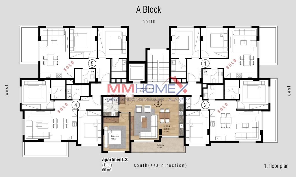 Komplekset bygges på en tomt på 1738 m² og består av: