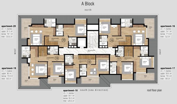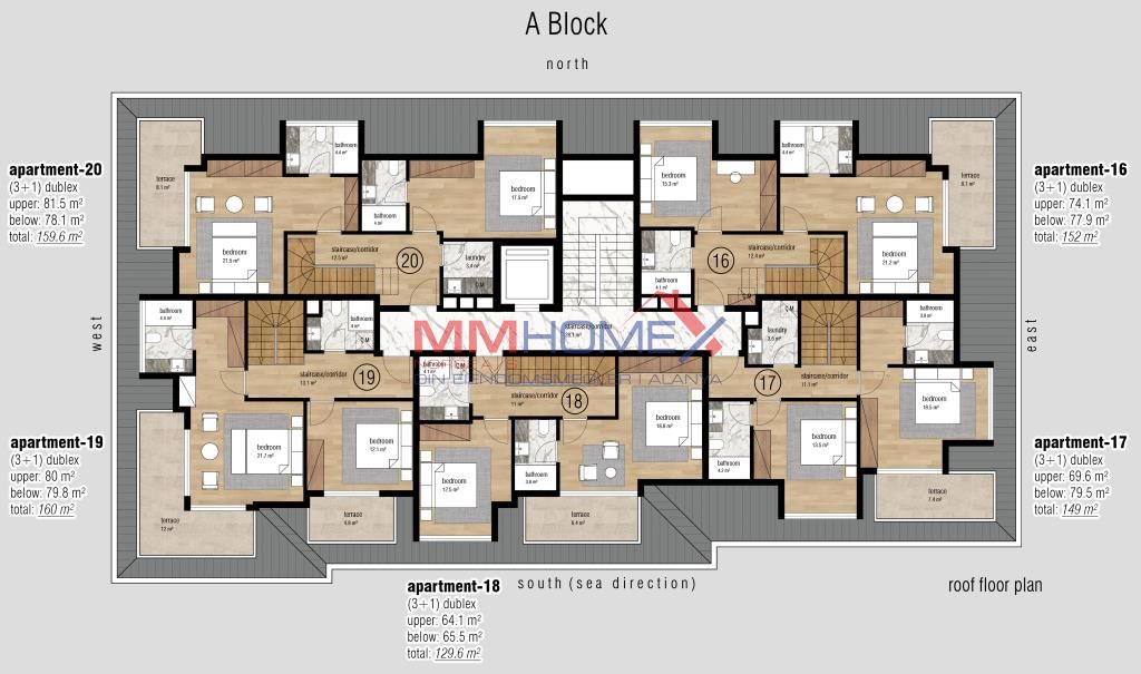 3+1 penthouse: 129–160 m², balkong + én eller to takterrasser