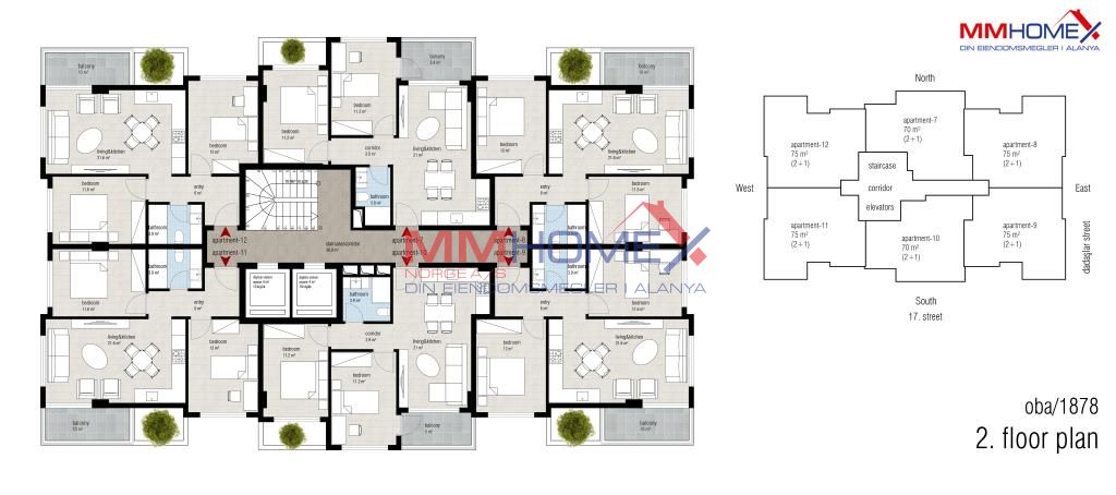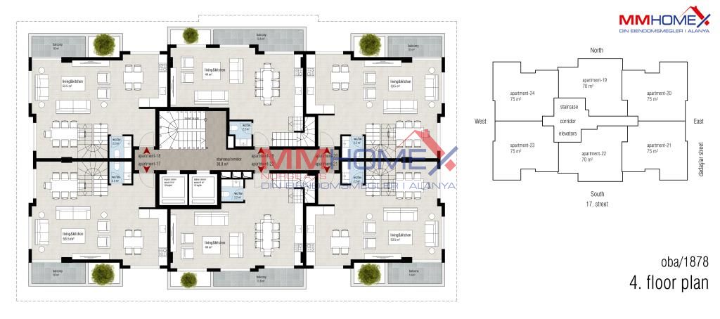 2+1, 3+1 og 4+1 toppleiligheter med moderne design og materialer av høy kvalitet.